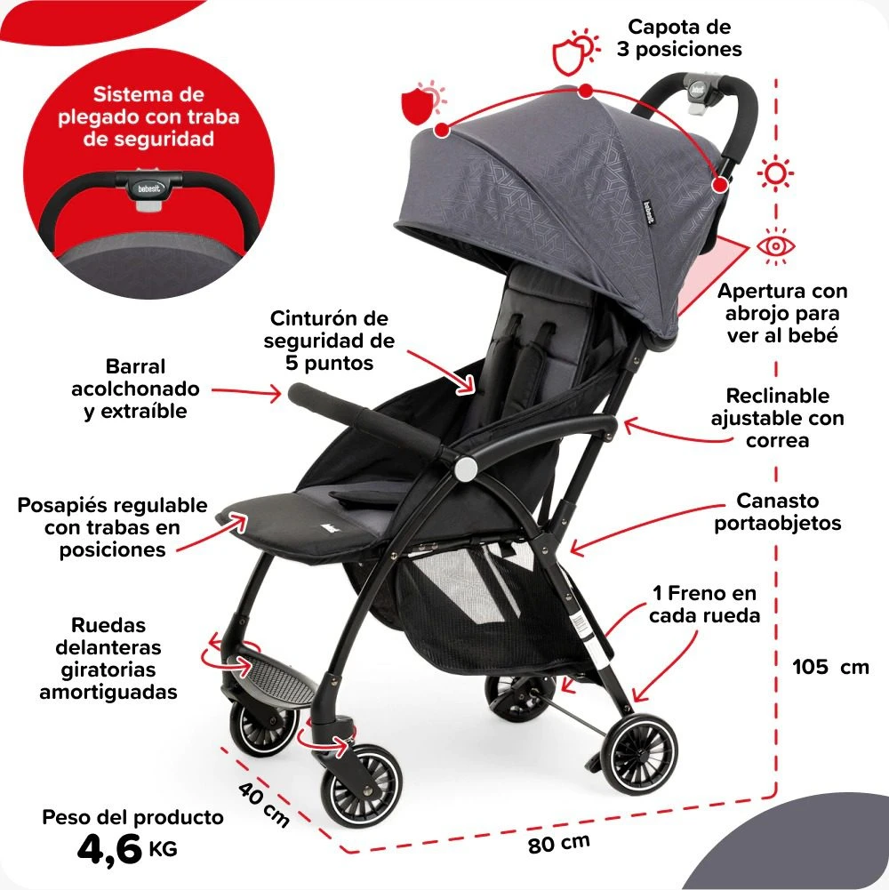 Cochecito compacto FOLDY Bebesit – Comodidad y practicidad para vos y tu bebé