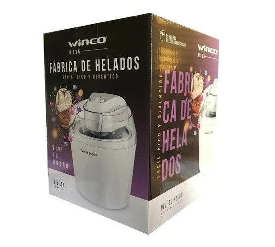 Fabrica de helados W135. Capacidad 1,5 Lts. Tapa transparente con adicionador de ingredientes. Preparacion rapida. Patas antideslizantes.