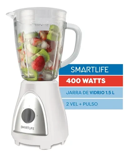 Para batidos y jugos de frutas o verduras, la licuadora siempre es la mejor aliada en la cocina. Realizá infinitas preparaciones y combiná todos los sabores que desees con la Licuadora de Smartlife SL-BL1008WPN que cuenta con Jarra de Vidrio resistente de 1.5 litros de capacidad, 2 velocidades + pulso, potencia de 400 watts, tapa dosificadora con medidor y base antideslizante.