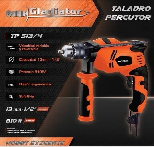 Taladro percutor GLADIATOR TP 513-4 810 w ¡Gran Oferta! Marca: GLADIATOR SEMI PROFESIONAL – HOGAR EXIGENTE Características: > Diseño ergonométrico – Voltaje/Frecuencia: 220v – 50hzCaracterísticas