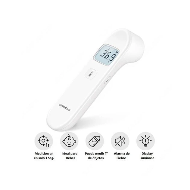 Permite la medición de temperatura sin contacto, de un sólo toque. Asimismo, posee alerta de vibración y sonido beep. Cuenta también con pantalla retro iluminada la cual indica la temperatura. Este modelo es precioso, liviano, rápido y seguro.