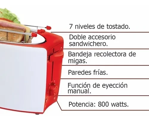 · 7 niveles de tostado para distintos tipos de tostado, calentar y descongelar.